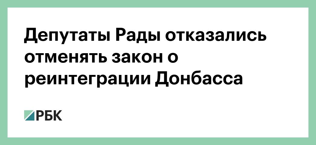 18 января Рада приняла во втором чтении и в целом закон о реинтеграции Донбасса. В документе Россия признается страной-агрессором, а отдельные районы Донецкой и Луганской областей называются оккупированными Россией территориями. Кроме того, согласно закону, Киев вправе применять необходимые силы и средства для противодействия агрессии со стороны России.