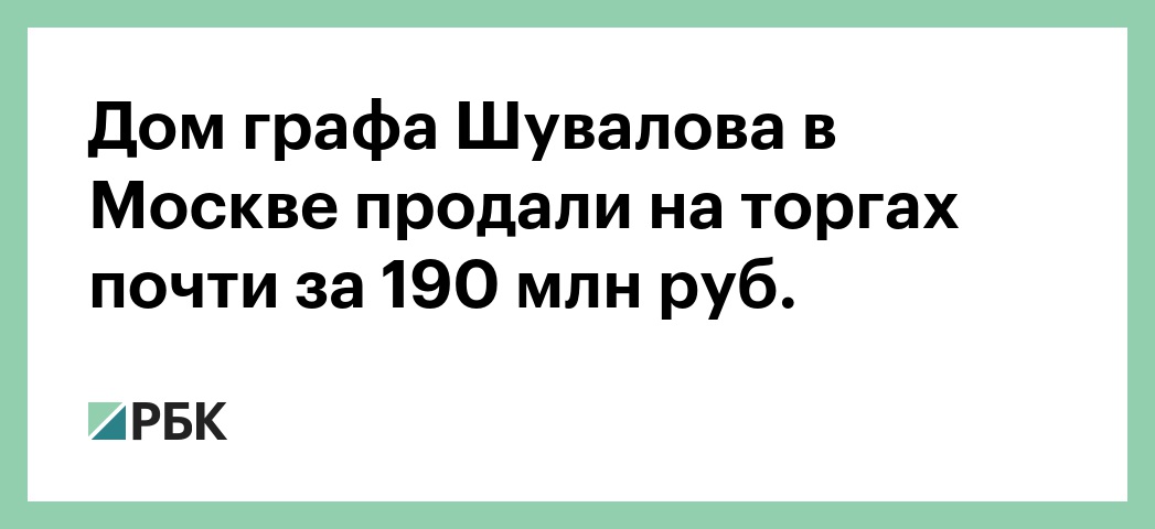 Дом графа Шувалова в Москве продали на торгах почти за 190 млн руб.