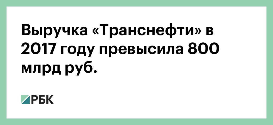 Председатель правления и президент ПАО «Транснефть» Николай Токарев на встрече с премьер-министром России Дмитрием Медведевым заявил, что выручка компании в 2017 году превысила 800 млрд руб., передает ТАСС. Чистая прибыль «Транснефти» при этом составила 186 млрд руб.