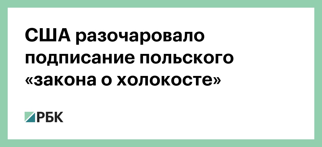 Подписанные польским лидером Анджеем Дудой поправки в закон об институте национальной памяти (также известный как «закон о холокосте») разочаровали США. Об этом заявил американский госсекретарь Рекс Тиллерсон, говорится в сообщении на сайте Госдепартамента США.