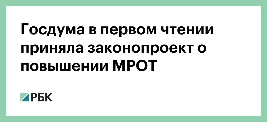 Закон о повышении минимального размера оплаты труда (МРОТ) до прожиточного минимума принят Госдумой в первом чтении. Об этом сообщается на сайте парламента.