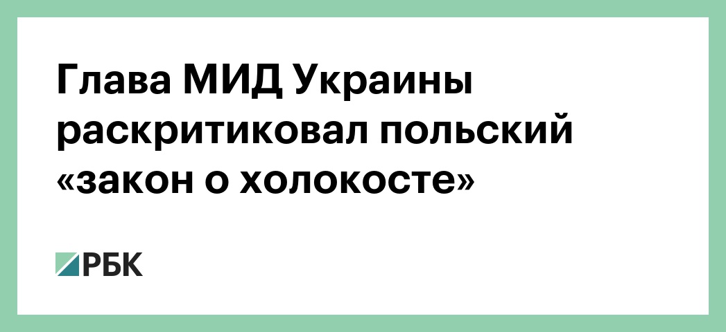 Министр иностранных дел Украины Павел Климкин заявил, что никакой закон не может установить историческую правду, поскольку у нее нет национальных границ. Об этом он написал на своей странице в Twitter, комментируя так называемый «закон о холокосте», принятый в Польше.