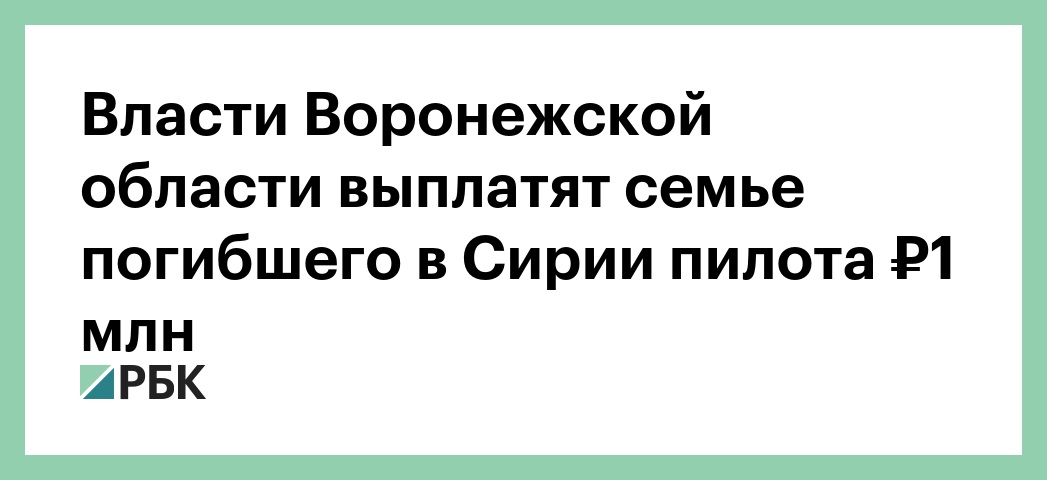 Власти Воронежской области выплатят семье погибшего в Сирии пилота ₽1 млн