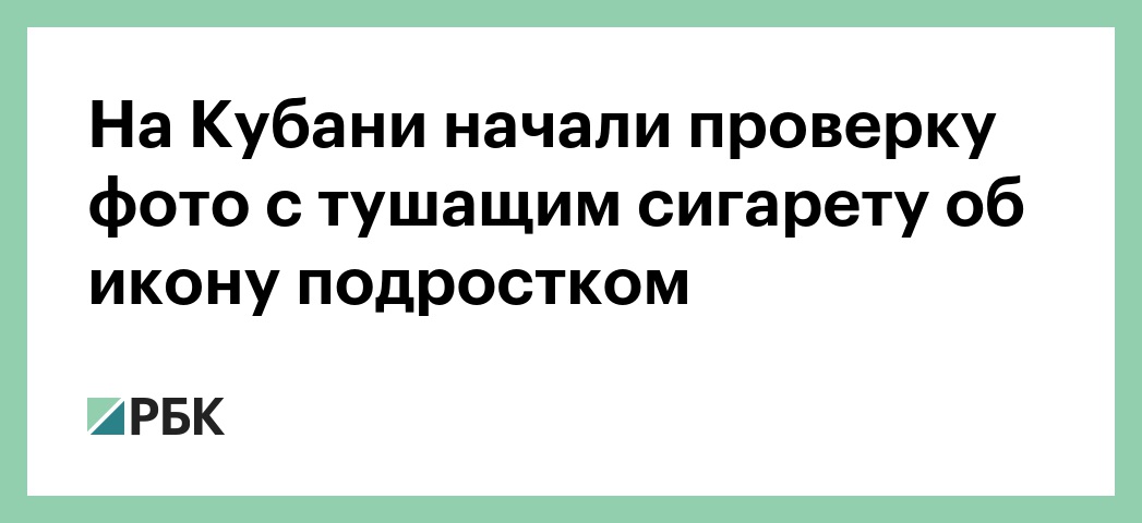 Полицейские начали проверку, после того как в интернете появилось фото, на котором подросток тушит сигарету об икону. Об этом сообщили в управлении МВД по Краснодарскому краю, передает «РИА Новости».