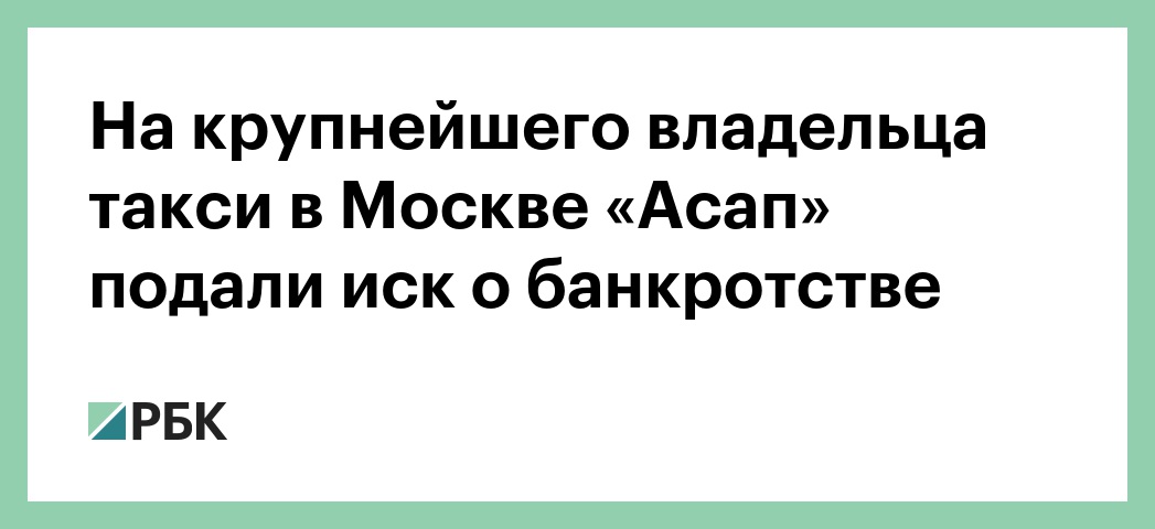 На крупнейшего владельца такси в Москве «Асап» подали иск о банкротстве