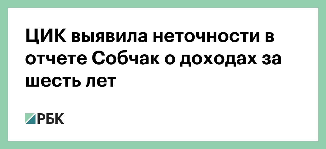 Центральная избирательная комиссия (ЦИК) обнаружила неточности в отчете кандидата в президенты Ксении Собчак о доходах за шесть лет. Об этом говорится в сообщении на сайте ЦИК.