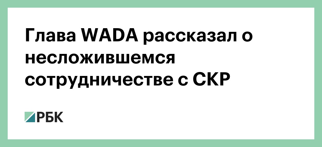 «Нам прислали приглашение с предложением работать совместно с СКР. Мы написали ответ, выразив согласие, но за этим ничего не последовало», — сказал Риди. Он отметил, что три недели назад WADA вновь направляло обращение в СКР, «но и на этот раз ничего не последовало». «По моему мнению, мяч плотно осел именно на стороне СКР», — добавил Риди. WADA требует предоставить ему доступ к допинг-пробам спортсменов, которые были опечатаны в Московской антидопинговой лаборатории в ходе расследования. В противном случае агентство отказывается признавать Российское антидопинговое агентство (РУСАДА) соответствующим кодексу WADA.