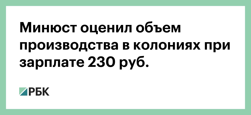Минюст оценил объем производства в колониях при зарплате 230 руб.