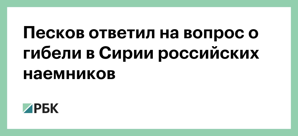 Пресс-секретарь президента России Дмитрий Песков прокомментировал информацию о гибели российских наемников в ходе боевых действий в Сирии, сообщает корреспондент РБК.