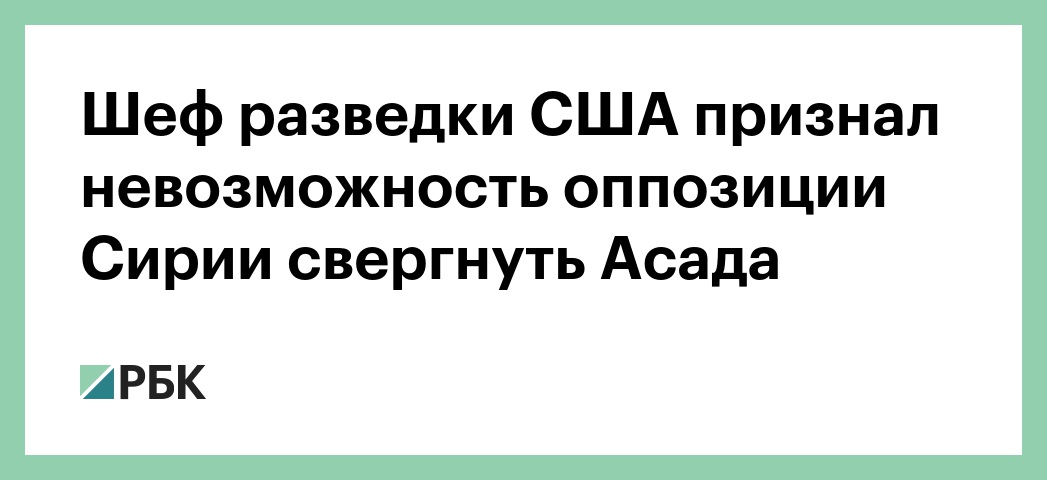 По его словам, Москва не сможет заставить Асада согласиться на «политическое урегулирование», которое, по мнению президента, «может значительно ослабить его позиции, если только Москва не готова силой убрать Асада». «Хотя Асад может вступать в мирные переговоры, он вряд ли согласится покинуть пост или пойти на значительные уступки оппозиции», — подчеркнул директор нацразведки.