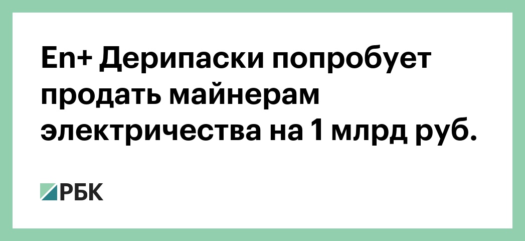 Группа En+ бизнесмена Олега Дерипаски в 2018 году намерена продать майнерам криптовалют электричество на сумму в 1 млрд руб. Об этом заявил генеральный директор En+ Максим Соков, сообщает газета «Ведомости».