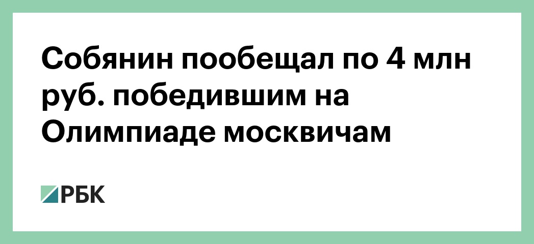 Собянин пообещал по 4 млн руб. победившим на Олимпиаде москвичам