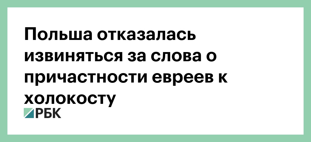 Глава МИД Польши Яцек Чапутович прокомментировал слова премьер-министра страны Матеуша Моравецкого, который заявил об участии представителей разных национальностей в преследовании евреев в ходе Второй мировой войны. Министр счел, что Варшаве не стоит извиняться за слова премьера, и напомнил, что в холокосте принимали участие в том числе и представители еврейского народа, сообщает телеканал TVP.