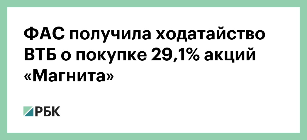 ФАС получила ходатайство ВТБ о покупке 29,1% акций «Магнита»