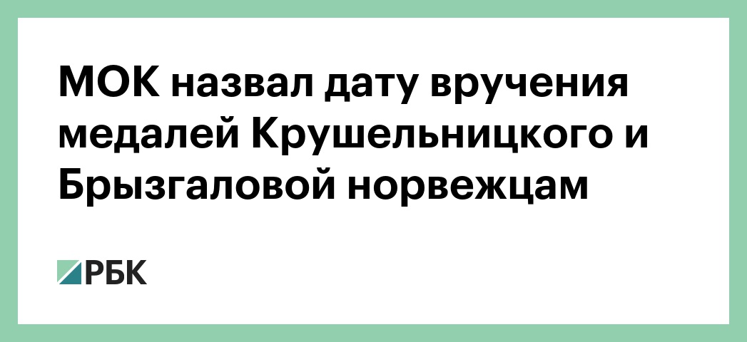 Международный олимпийский комитет (МОК) назвал дату передачи бронзовых медалей российских керлингистов Александра Крушельницкого и Анастасии Брызгаловой, чьи результаты аннулировали после нарушений антидопинговых правил, сборной Норвегии. Об этом МОК написал на своей странице в Twitter.