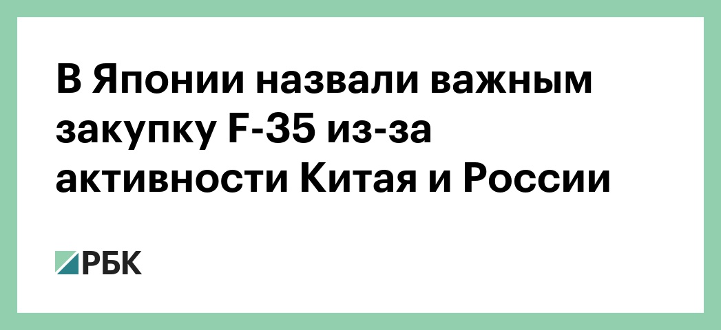 Министр обороны Японии Ицунори Онодэра назвал крайне важным размещение на территории страны американских истребителей пятого поколения F-35 в связи с военной активностью Китая и России в регионе. Об этом он заявил во время выступления на авиабазе японских Сил самообороны Мисава в префектуре Аомори, сообщает телеканал NHK.