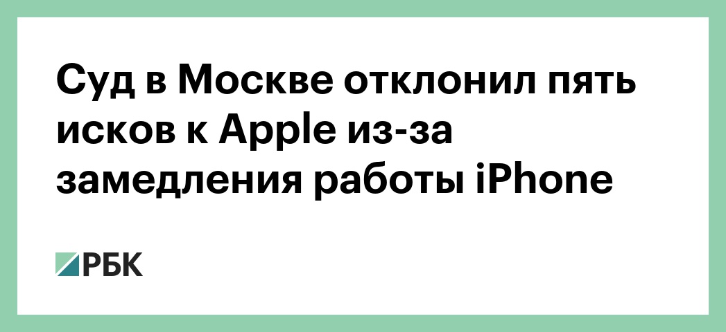 Тверской суд Москвы отказался рассматривать пять исков владельцев iPhone к ООО «Эппл Рус» (российская «дочка» Apple). Об этом РБК сообщили в пресс-службе суда.