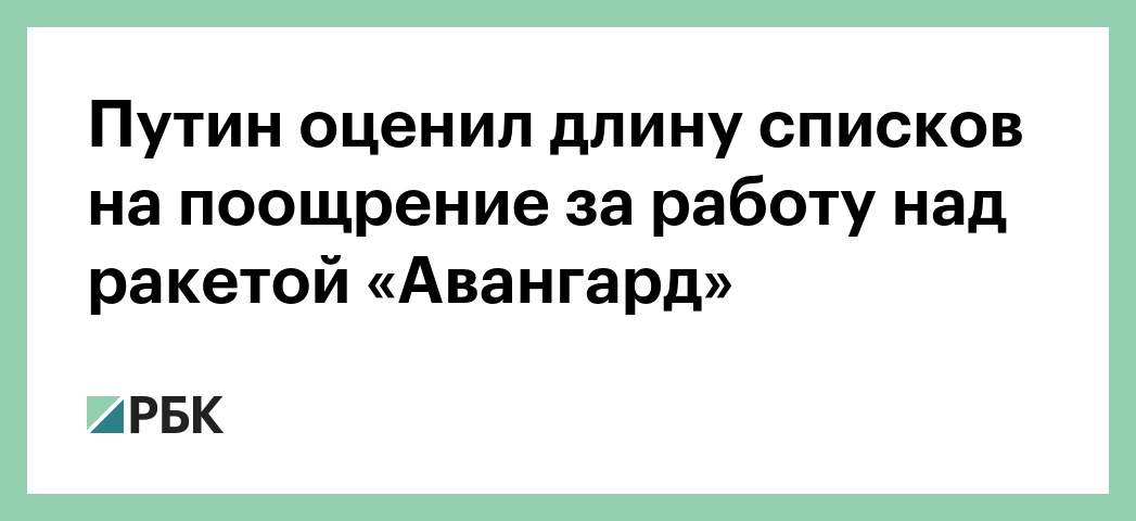 «Когда закончилась работа по «Авангарду», я попросил принести мне список людей, которых нужно отметить и наградить», — рассказал российский лидер. Он отметил, что ему принесли «несколько листов, где убористым шрифтом были отмечены не люди, а предприятия и научно-конструкторские бюро». «Мне главный конструктор объяснил: это наша кооперация, без одного не было бы другого. То есть это десятки предприятий и тысячи рабочих!» — сказал Путин.