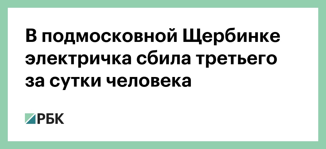 Ранее сообщалось, что 3 марта у подмосковной Щербинки электричка Москва — Серпухов сбила женщину с ребенком. Они переходили пути вне оборудованного перехода. Ребенок скончался на месте, женщина была госпитализирована.