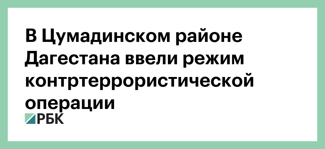 В Цумадинском районе Дагестана введен режим контртеррористической операции (КТО). Об этом сообщает ТАСС со ссылкой на представителя оперативного штаба Национального антитеррористического комитета (НАК) в Дагестане.