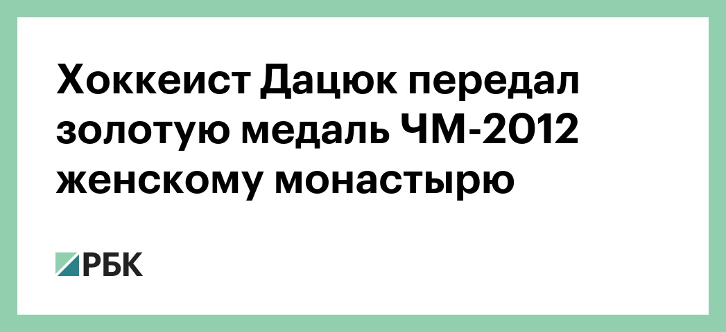 Капитан российской сборной по хоккею Павел Дацюк передал золотую медаль ЧМ-2012 Среднеуральскому женскому монастырю (Свердловская область). Об этом сообщает Екатеринбургская епархия. Спортсмен посетил женский монастырь в честь иконы Божией Матери «Спорительница хлебов» после победы на Олимпиаде-2018.