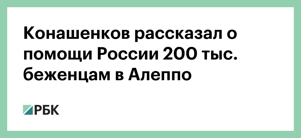 «За последнее время в Алеппо при содействии российского Центра примирения вернулись уже более 200 тыс. сирийских беженцев», — рассказал он. Конашенков уточнил, что только за последнюю неделю безопасный въезд в Алеппо был обеспечен 1 тыс. сирийских семей. Помощь российские военные оказывают и беженцам в провинции Дейр-эз-Зор. По его словам, при содействии российского Центра примирения уже около 20 тыс. мирных жителей вернулись в свои дома в этой провинции.