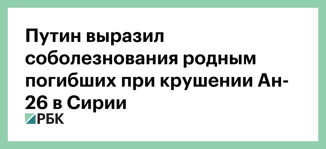 Путин выразил соболезнования родным погибших при крушении Ан-26 в Сирии