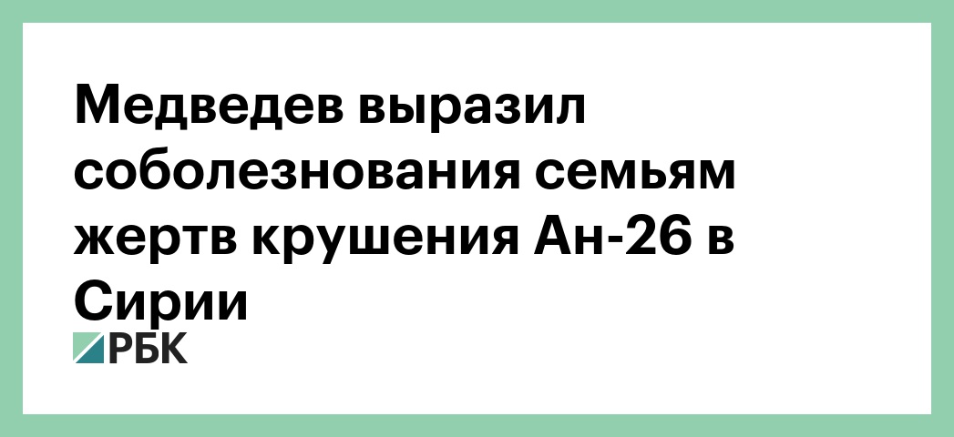 Премьер-министр Дмитрий Медведев выразил соболезнования семьям погибших при крушении российского транспортного самолета Ан-26 в Сирии. Об этом сообщается на сайте правительства.