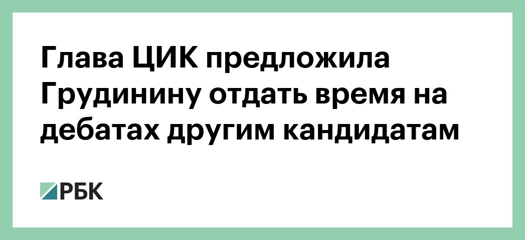 Глава Центральной избирательной комиссии (ЦИК) Элла Памфилова предложила кандидату в президенты России от партии КПРФ Павлу Грудинину отдать свое время на предвыборных дебатах другим кандидатам, сообщает корреспондент РБК. «Ушел один из кандидатов и не будет участвовать [в дебатах], значит, надо делить время», — заявила она.