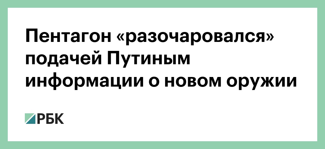 Стиль подачи президентом Владимиром Путиным информации о новейших разработках в области вооружений «разочаровал» Пентагон, заявил заместитель главы департамента обороны США Джон Руд на обсуждении военного бюджета на 2019 год. Соответствующая запись опубликована на официальном YouTube-канале комитета по вооруженным силам палаты представителей конгресса США.
