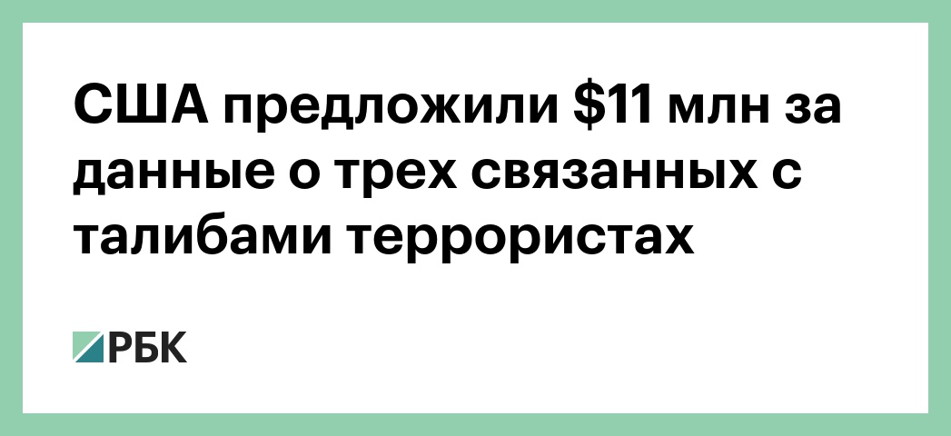 Госдепартамент США заплатит в общей сложности $11 млн за данные о трех террористах из группировки «Техрик-е Талибан Пакистан», связанной с движением «Талибан» (обе организации запрещены в России). Об этом говорится в сообщении на сайте Госдепа США.