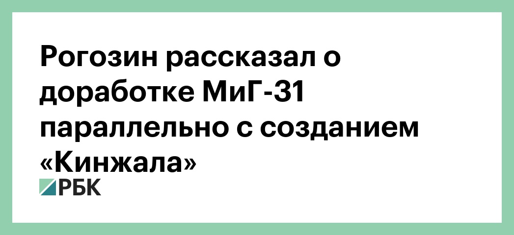 Вице-премьер Дмитрий Рогозин сообщил, что модернизация истребителя-перехватчика МиГ-31 шла параллельно с разработкой гиперзвуковой противокорабельной ракеты «Кинжал». Об этом он написал на своей странице в Twitter.