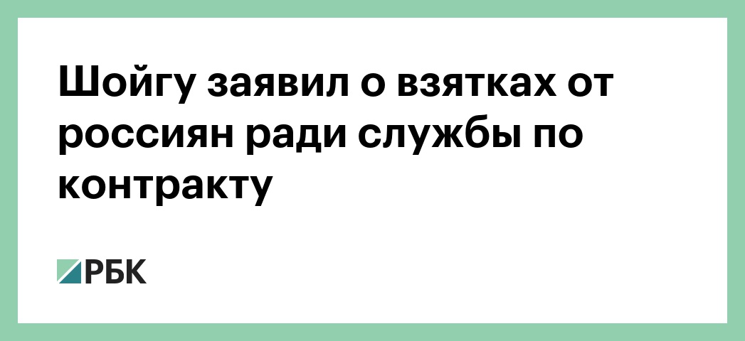Министр обороны России Сергей Шойгу заявил, что россияне начали давать взятки, чтобы служить в Российской армии по контракту. Об этом он рассказал в интервью для фильма «Путин», размещенном в социальной сети «Одноклассники».