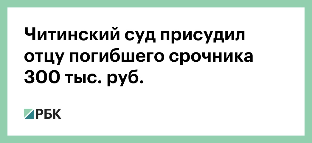 Черновский районный суд Читы присудил отцу погибшего солдата-срочника Петру Беспрозванных 300 тыс. руб. в качестве компенсации морального вреда. Об этом РБК сообщил юрист Роман Сукачев, сотрудничающий с правозащитной организацией «Зона права».