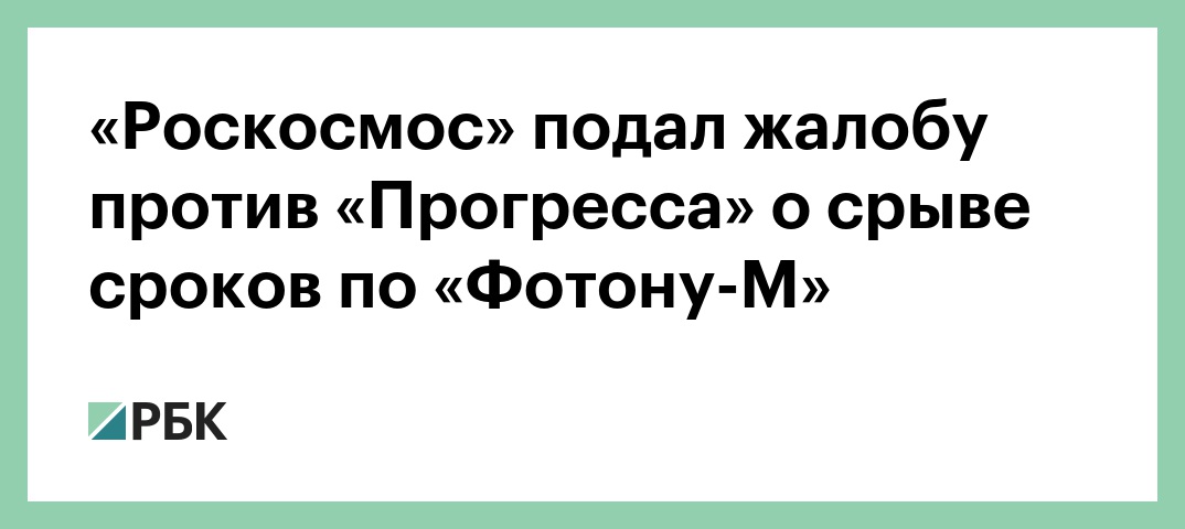 «Роскосмос» подал жалобу против «Прогресса» о срыве сроков по «Фотону-М»