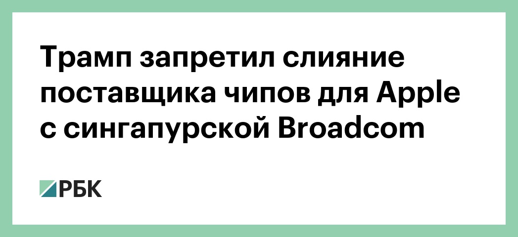 Президент США Дональд Трамп запретил сделку по слиянию американской корпорации Qualcomm (поставщик чипов и микросхем для корпорации Apple) с сингапурской компанией Broadcom, которая является производителем интегральных микросхем для устройств связи. Соответствующий указ опубликован на сайте Белого дома.