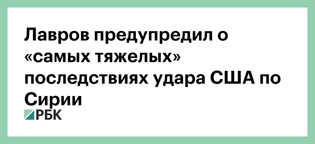 Лавров напомнил, что в апреле США нанесли удар по аэродрому Хан-Шейхун после того, как Россия договорилась о доступе к нему для проверки информации о применении в Хан-Шейхуне зарина. «Это информация, которую мы уже несколько раз доводили до наших американских партнеров и напрямую, и через СМИ и которая вообще игнорируется. Поэтому если будет очередной удар такого рода, то последствия будут самыми тяжелыми», — сказал министр.