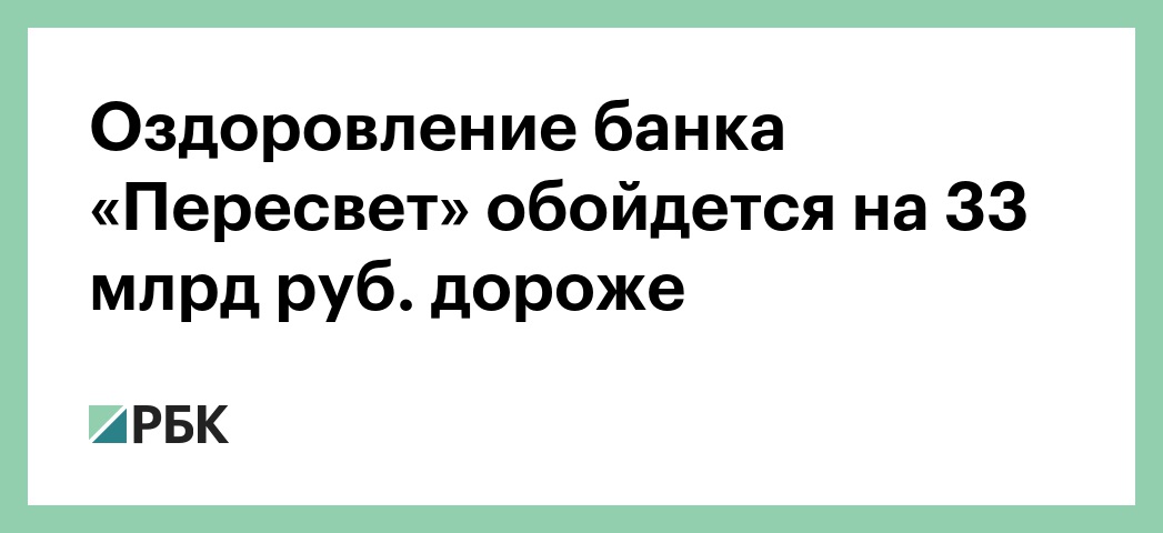 Оздоровление банка «Пересвет» обойдется на 33 млрд руб. дороже