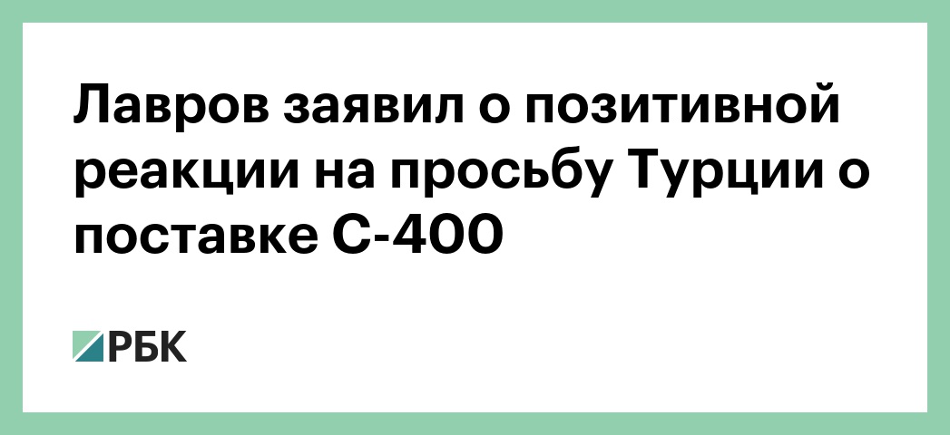 Москва позитивно отреагировала на просьбы Анкары ускорить поставки ракетного комплекса С-400 Турции. Об этом заявил глава МИДа Сергей Лавров по итогам переговоров с министром иностранных дел Турции Мевлютом Чавушоглу, передает ТАСС.