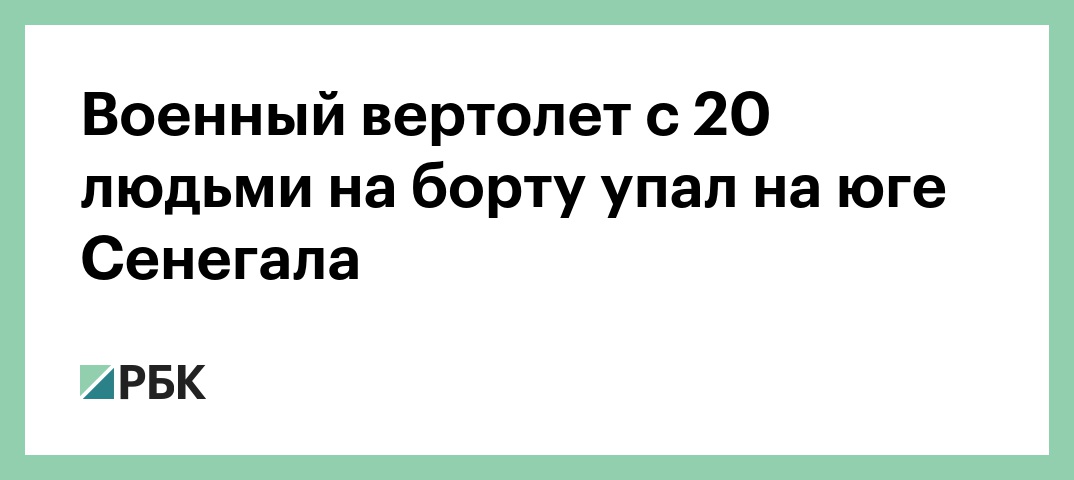На юге Сенегала потерпел крушение военный вертолет, на борту которого находились 20 человек, сообщает радиостанция Europe 1 со ссылкой на полковника сенегальских Вооруженных сил Абду Ндиая.