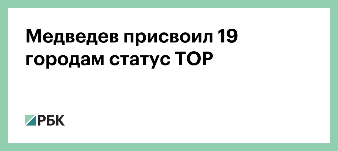 Премьер-министр Дмитрий Медведев подписал постановления о присвоении статуса территории опережающего развития (ТОР) 19 городам. Соответствующие документы опубликованы на сайте правительства.