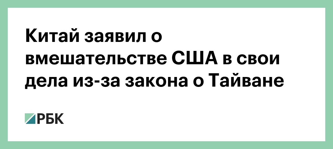 В связи с этим Минобороны Китая потребовало от США отказаться от выполнения на практике принятого закона, «прекратить официальные контакты между США и Тайванем, прекратить военные связи США и Тайваня и прекратить продажу оружия на Тайвань, чтобы избежать серьезного ущерба военным отношениям между Китаем и США, миру и стабильности в Тайваньском проливе», — следует из заявления.