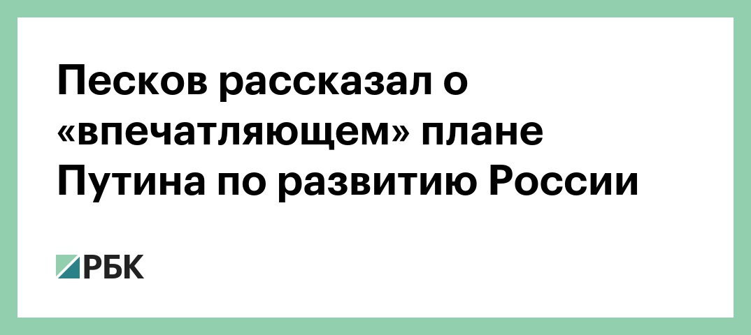 Песков рассказал о «впечатляющем» плане Путина по развитию России