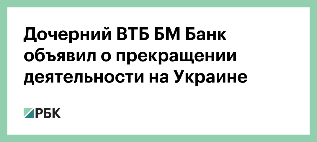 «19 марта на общем собрании акционеров АО «БМ Банк» принято решение о прекращении банковской деятельности АО «БМ Банк» с сохранением юридического лица. В сентябре 2018 года Национальному банку Украины будет направлено ходатайство об отзыве банковской лицензии», — говорится в сообщении. О дальнейших планах работы «дочки» ВТБ в качестве юридического лица пока не говорится.
