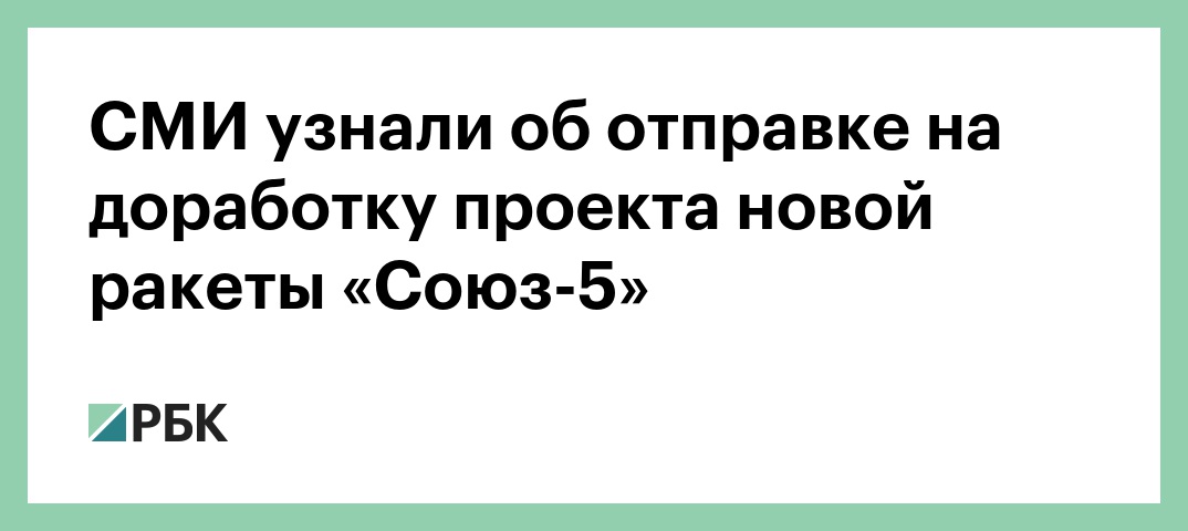 Эскизный проект новой российской ракеты-носителя среднего класса «Союз-5» для пилотируемых проектов отправили на доработку. Об этом сообщили источники «РИА Новости» в ракетно-космической отрасли.