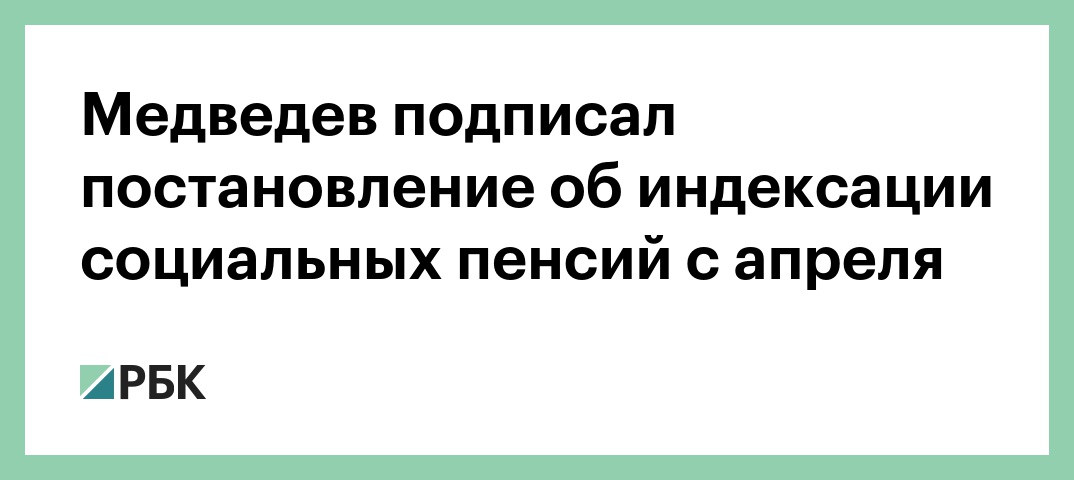 Премьер министр Дмитрий Медведев подписал постановление об индексации социальных пенсий с 1 апреля, сообщает корреспондент РБК.