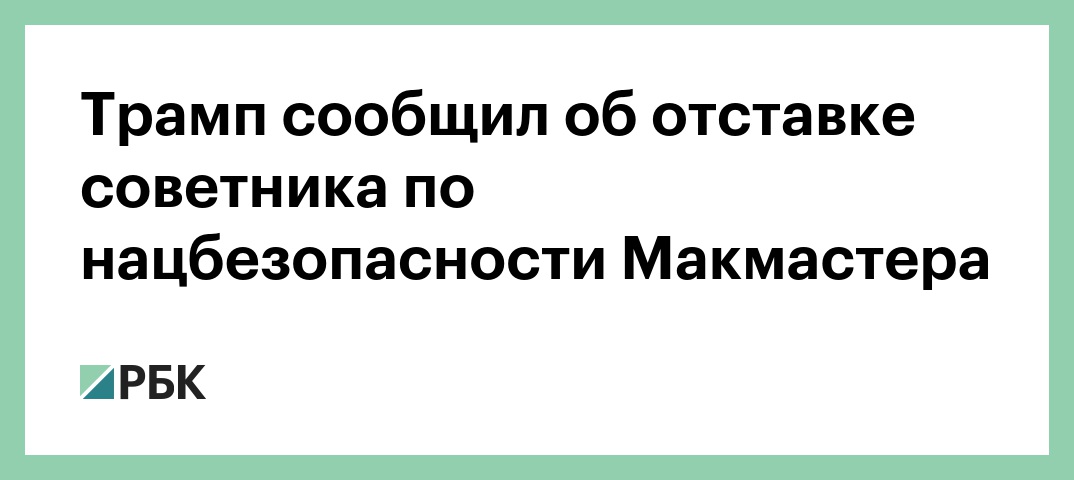 Президент США Дональд Трамп объявил об отставке советника по нацбезопасности Герберта Макмастера, его место займет экс-постпред США при ООН Джон Болтон. Об этом Трамп написал на своей странице в Twitter.