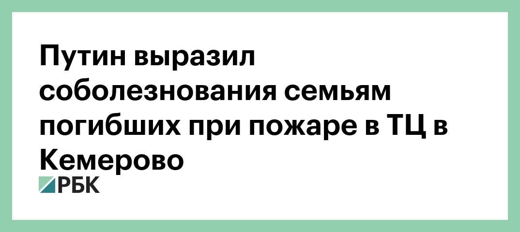 Путин выразил соболезнования семьям погибших при пожаре в ТЦ в Кемерово