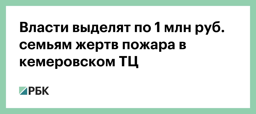 Власти выделят по 1 млн руб. семьям жертв пожара в кемеровском ТЦ