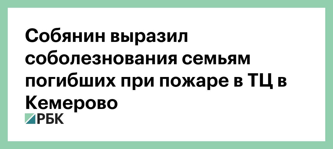 «Трагедия в Кемерове. Сложно подобрать слова... Глубокие соболезнования всем, кто потерял родных в этом страшном пожаре», — написал Собянин на своей странице в Twitter.
